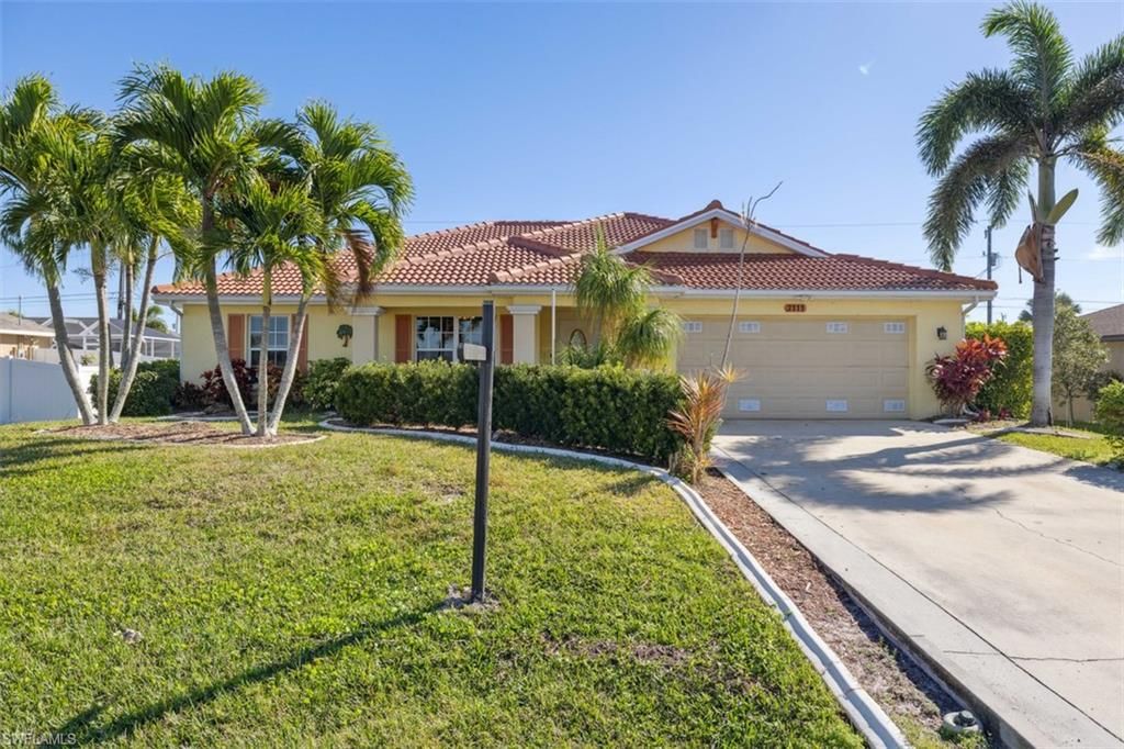 NEW MARKET PRICE ADJUSTMENT Meticulously maintained 3 bedroom +Den with heated pool home, is situated in desirable Southwest Cape Coral. New tile roof (2023), fence (2020), AC (2015/preventative maintenance preformed 2023), complete interior paint 2023. Triple sliders allow for indoor/outdoor living with ease. Under truss living space grants outdoor area experience while providing shade and protection from mid day summer sun and rain showers. Lush mature landscaping provides shade and added privacy. Additional 10 X 16 Superior shed for yard/pool equipment. Entire property irrigation system (maintenance 2023) City water and sewer installed and all assessments paid. Conveniently located near restaurants, shops, schools, grocers, coffee shops, doctors, urgent care, and hospitals. 25 miles to RSW International Airport, 26 miles to Punta Gorda airport, 12 miles to Cape Coral Yacht Club & Beach, 16 miles to Fort Myers Beach. Cape Coral is a lively community offering annual fest, farmer markets, infamous bike night, live music events, public boat ramps with over 400 miles of Gulf Access and navigable canals, numerous parks/nature preserves, and over 120 miles of bike lanes and paths throughout the city.